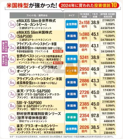 出典:NISA】オルカン+αで買いたい「おすすめ投資信託」3本を紹介! 好成績の日本のテクノロジー企業に投資するタイプや、アジアの新興国に投資 する商品に注目|新NISAおすすめ比較[2025年]|ザイ・オンライン diamond.jp